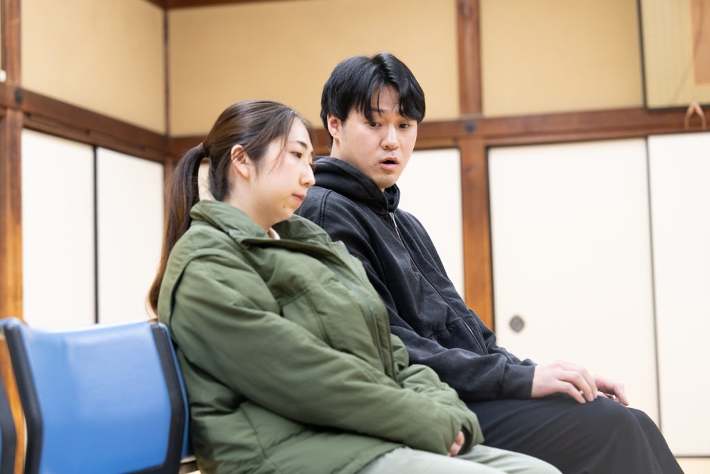 夕子と信二のシーンでは夕子が信二に凭れるというト書きがあった。芝居を始める前に、どこにどのように凭れるのかを事前に確認しておくことが大事だと、芝居を始める前の行動にアドバイスがあった。ト書きも曖昧にしてしまうと、芝居をしている自分たちだけではなく、見ている方にも人物の関係性や心情が伝わらず、脚本読解でも芝居の中でも、曖昧な部分を残しては人物が成り立たず何も伝えられないのだと強く実感した。